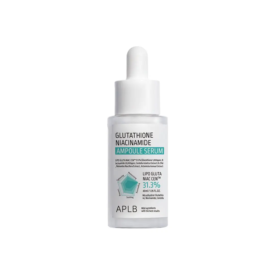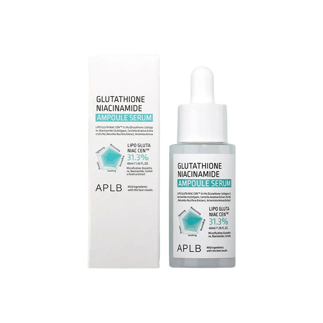 Unlock radiant, hydrated skin with APLB Glutathione Niacinamide Ampoule Serum. This potent 40ml serum features a high concentration of Niacinamide, Glutathione, and Centella Asiatica Extract to deeply nourish and intensely hydrate your skin, enhancing its natural vitality and moisture balance.