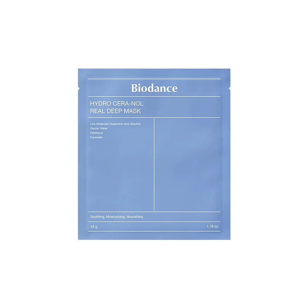 Experience deep hydration and calming care with the BIODANCE Hydro Cera-Nol Real Deep Mask. This single-piece mask is designed to intensely moisturize and soothe your skin.