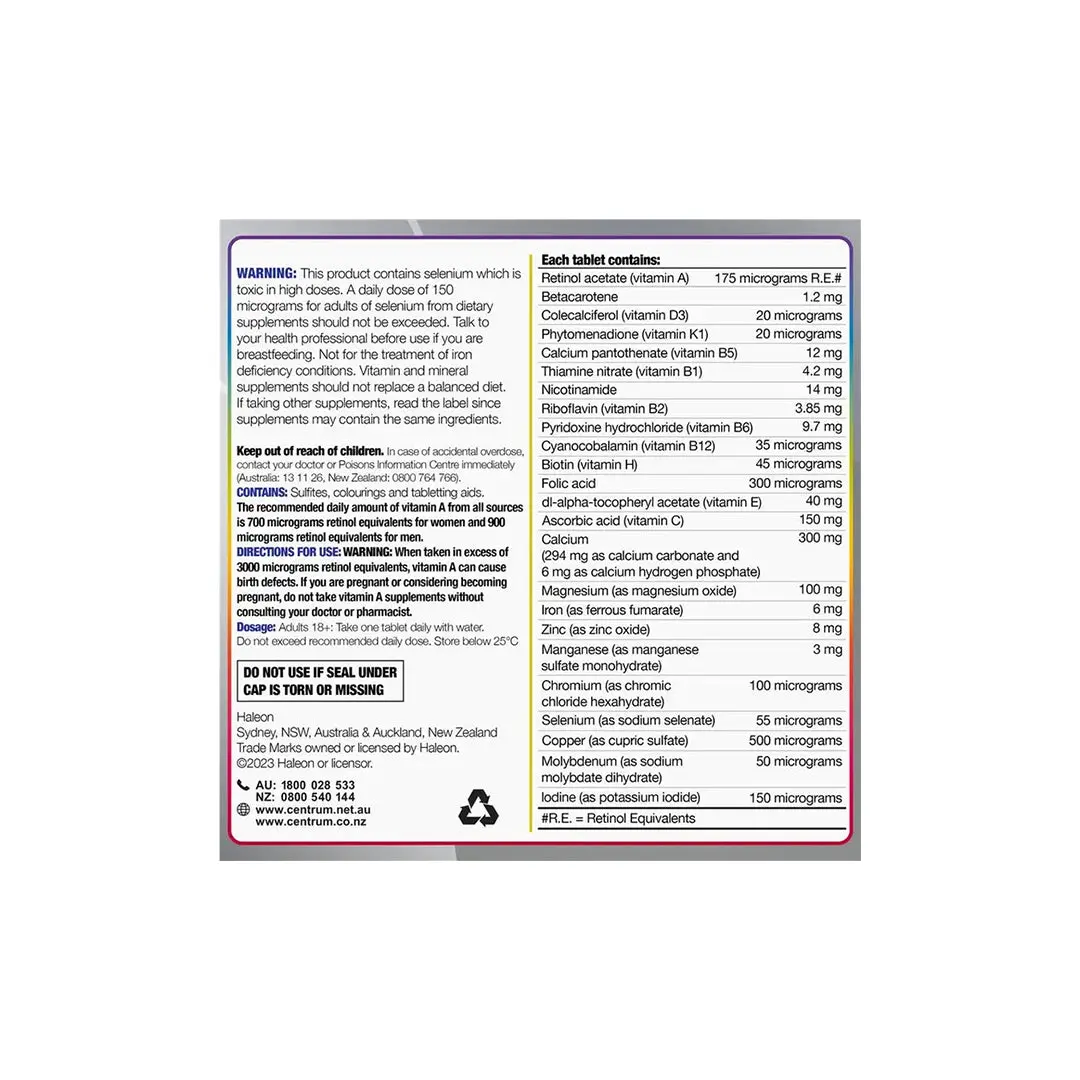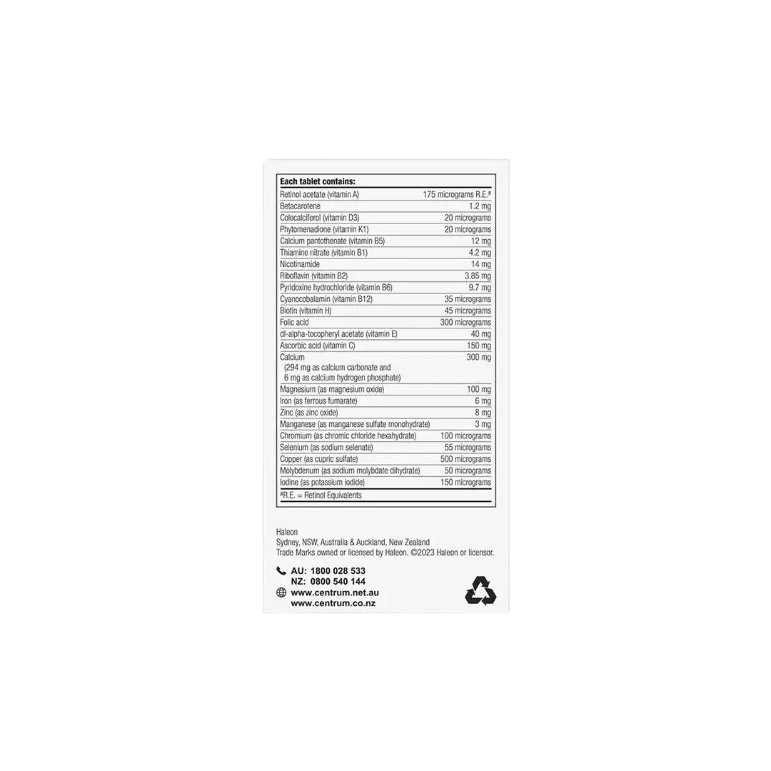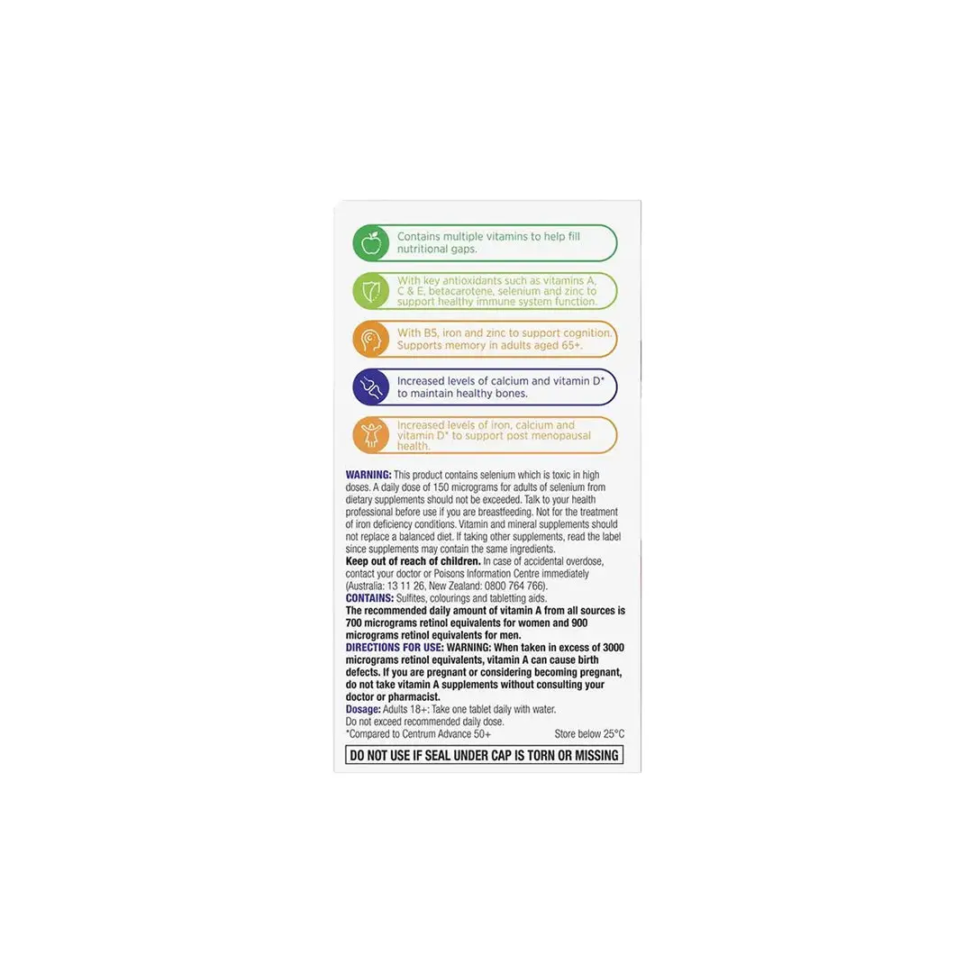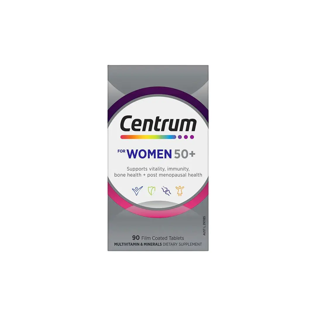 Support your well-being with Centrum Women 50+ Multivitamin. This pack contains 90 tablets, specifically formulated with essential nutrients for women aged 50 and above.