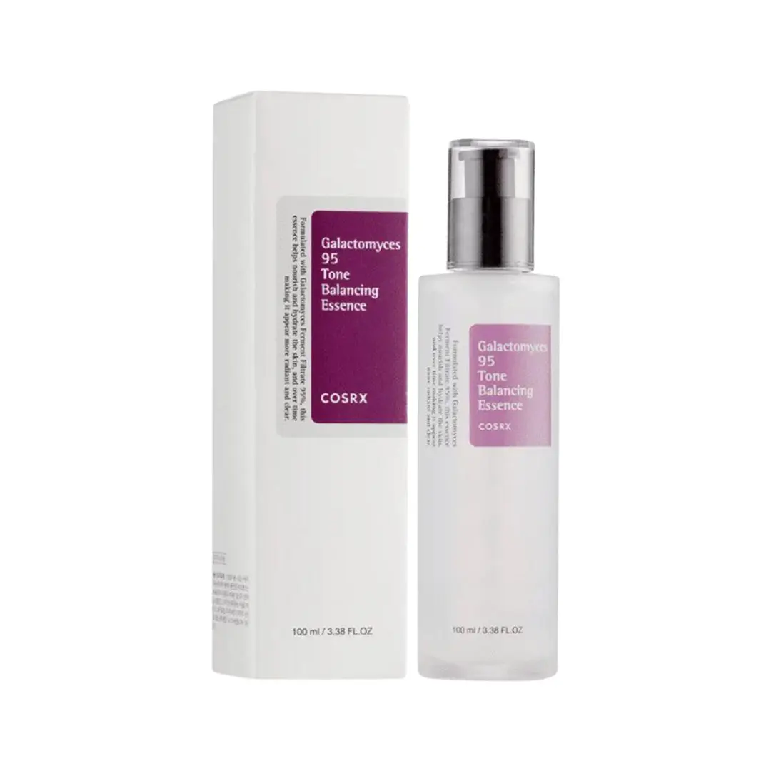 Reveal a clearer, more luminous complexion with COSRX Galactomyces 95 Tone Balancing Essence. This essence features a high concentration of 95% Galactomyces Ferment Filtrate to deeply nourish and hydrate the skin.