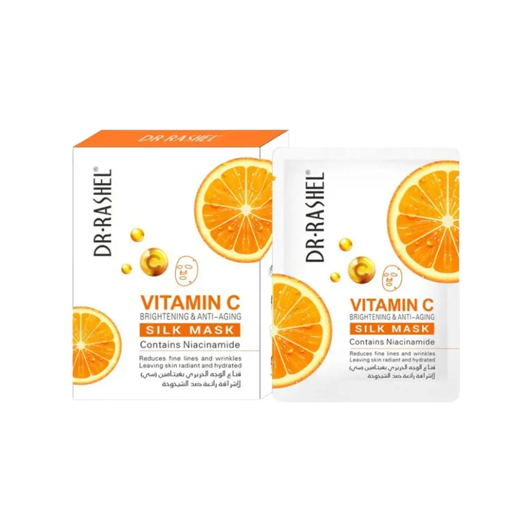 Reveal radiant skin with Dr. Rashel Vitamin C Brightening and Anti-Aging Silk Masks. This pack contains 5 masks, each infused with high concentrations of Vitamin C and Niacinamide to brighten and rejuvenate your complexion.