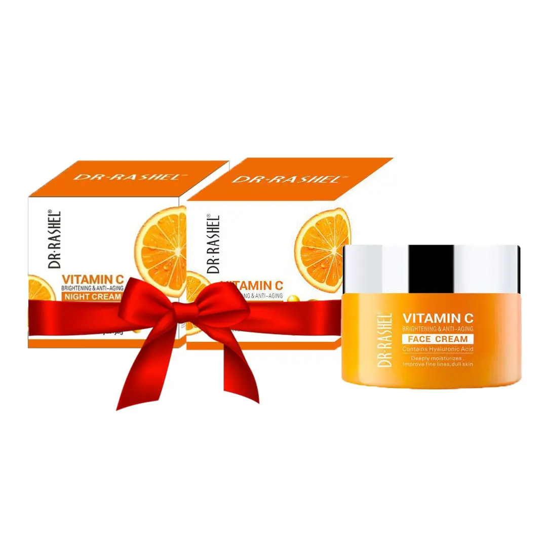 Discover the ultimate skincare experience with the Dr Rashel Vitamin C Brightening Gift Set. This set includes a potent Vitamin C Brightening & Anti-aging Day Cream and a revitalizing Vitamin C Night Cream, both designed to give you a luminous, youthful glow.