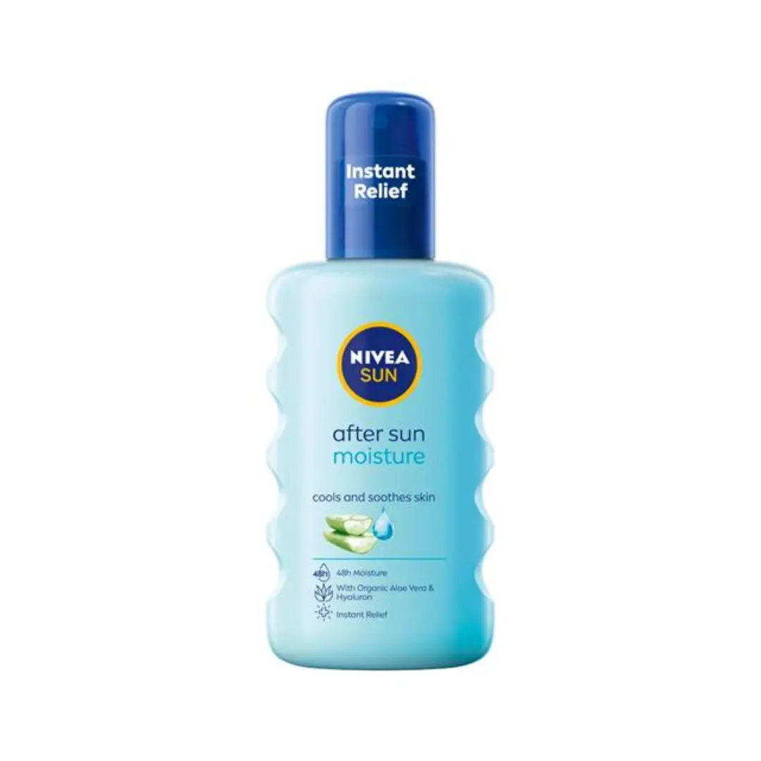 Soothe and hydrate your skin after sun exposure with Nivea Sun After Sun Moisturising Spray. This cooling formula, enriched with Aloe Vera and Hyaluron, helps maintain skin elasticity and provides intense moisture for up to 48 hours.