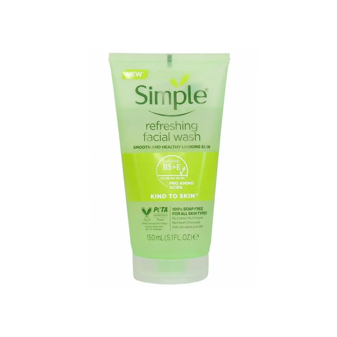 Achieve healthier, smoother skin with Simple Refreshing Facial Wash. This gentle gel cleanser is enriched with a vitamin-rich formula, including Vitamin E and Pro Vitamin B5, to strengthen and protect your skin. Its Pro Amino Acid Technology boosts hydration, leaving your complexion looking radiant and feeling comfortable.